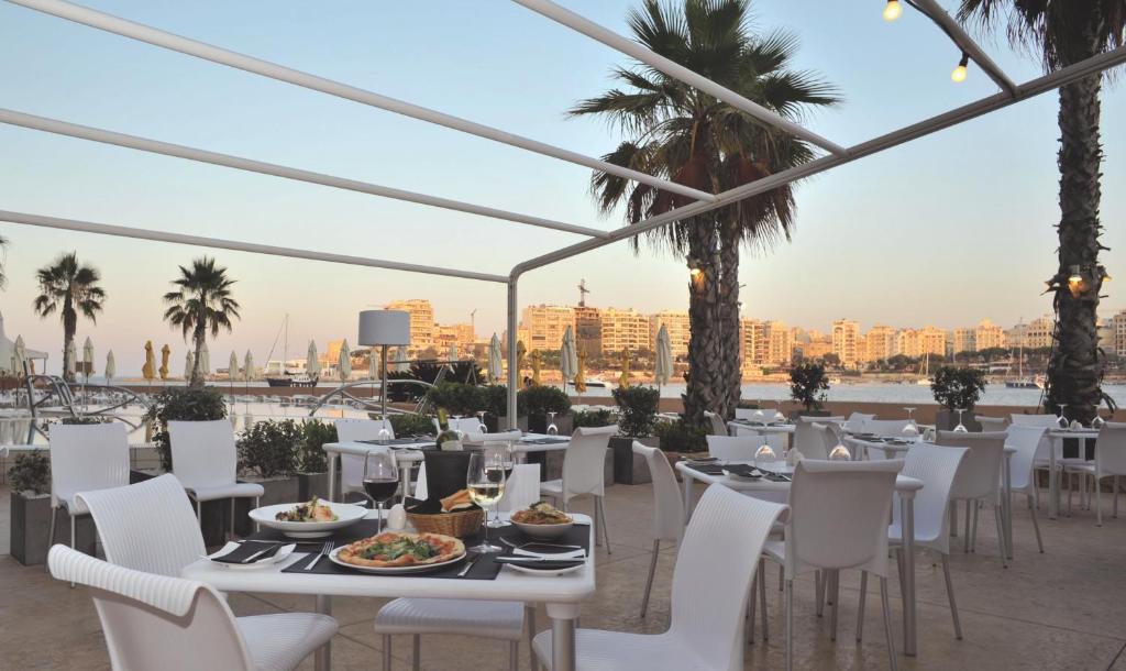 Cavalieri servește un mic dejun tip bufet, precum și preparate din bucătăria mediteraneană și locală pentru prânz și cină. Sala principală de mese are vedere la Golful St Julian. În timpul verii puteți lua masa în aer liber, iar grătarele sunt adesea servite pe terasa la soare.