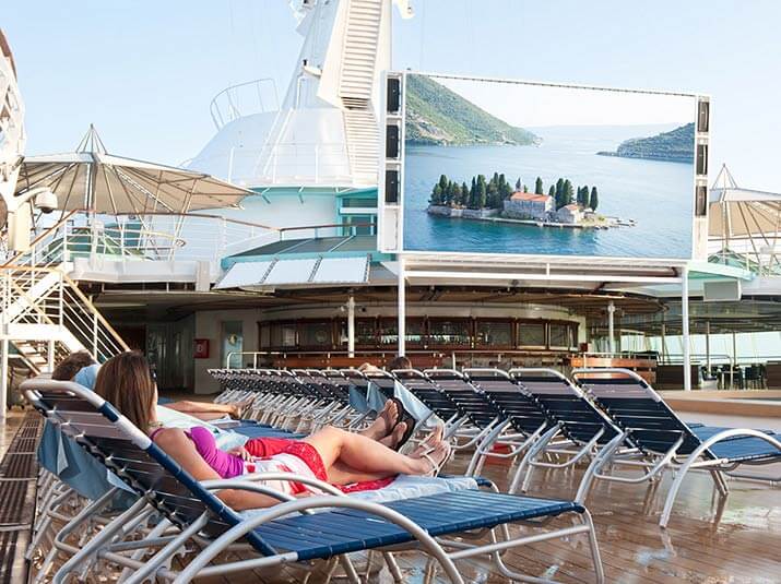 - activitatile la bordul vasului: tiroliana, carusel, simulator de surf, perete de catarare, patinoar, piscine si terenuri de sport, simulatoare de mini-golf si golf, pista de role si pista de jogging, centru de fitness (aceste facilitati variaza de la vas la vas si se pot percepe taxe suplimentare pentru anumite activitati)