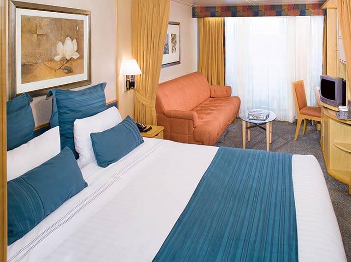 Cabina exterioara cu geam panoramic are in componenta daua paturi twin care se pot converti intr-un pat de tip King Royal, o zona de zi cu canapea, masa de toaleta si baie privata. Suprafata cabina: 18 mp
