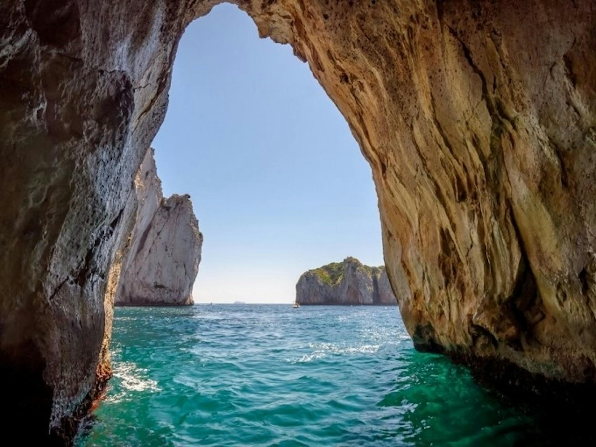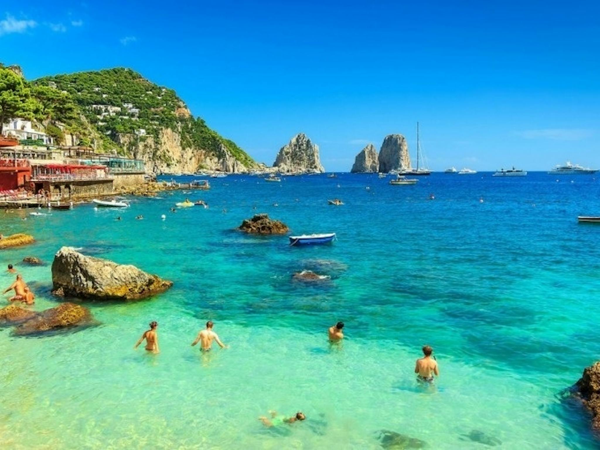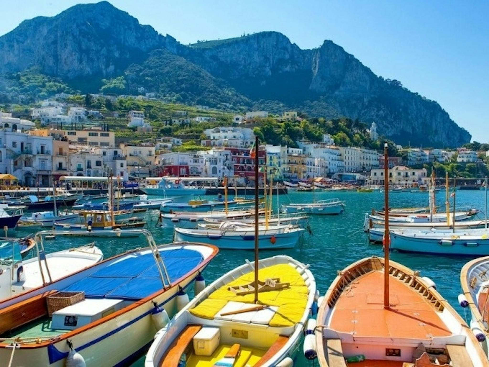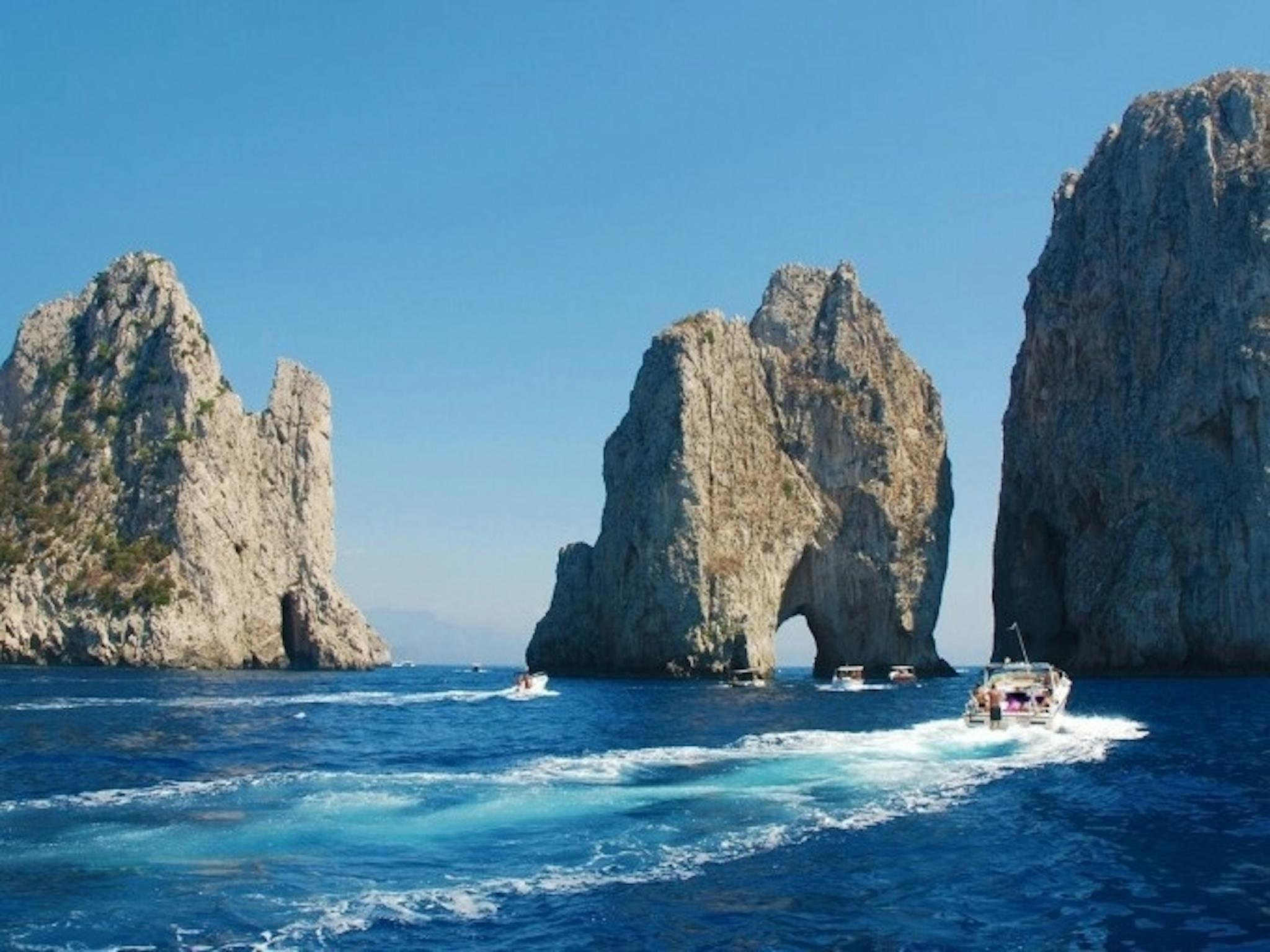 După sosirea în Napoli, urcă-te pe o barcă cu motor pentru o calatorie de 45 de minute către Marina Grande, din portul Capri. Odată ce ați ajuns pe insulă, puteți alege să vizitați și să vă bucurați de insula sau plătind ghidului de turism la fața locului pentru o vizita la Grota Albastră (opțional), luând o altă barcă cu motor pentru a vedea faimoasa Grota și experimentează priveliștile impresionante ale Anacapri.