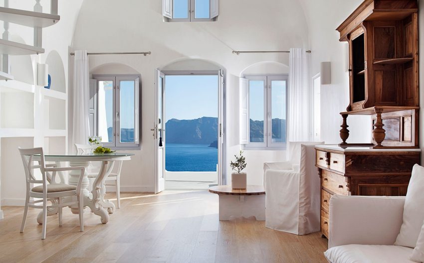 Hotelul Katikies se află la 18 km de Aeroportul Santorini şi de Portul Athinios.