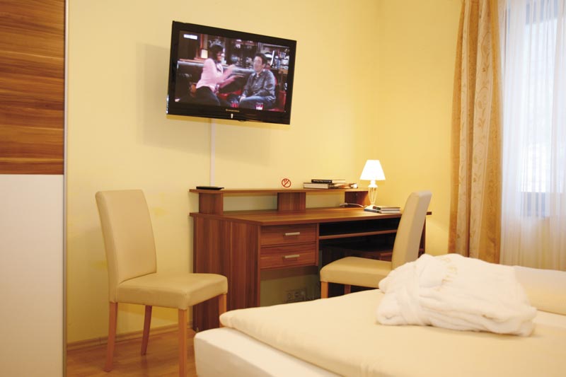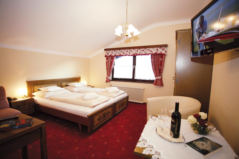 Camerele spaţioase ale hotelului Sportalm sunt mobilate în stil tradiţional şi includ un TV cu ecran plat cu canale prin satelit, un radio şi o baie cu duş, toaletă şi uscător de păr. Cele mai multe camere au balcon.
