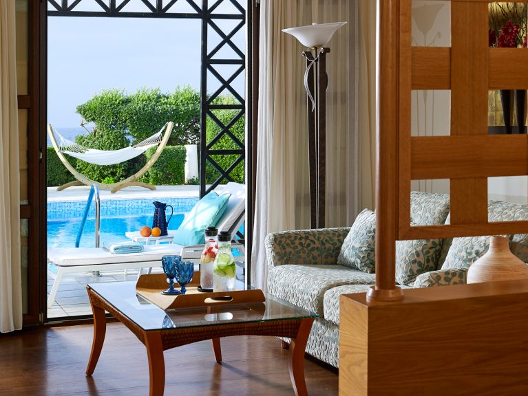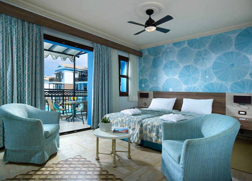 Complexul de 5 stele din Heraklion pune la dispoziție camere amplasate în grădina luxuriantă a proprietăţii. Toate sunt dotate cu aer condiţionat, TV prin satelit, frigider şi uscător de păr. Oaspeţii sunt întâmpinaţi cu un coş de bun venit, care include vin şi papuci.