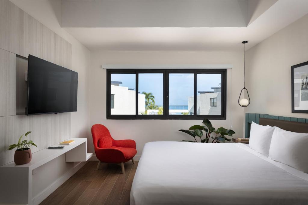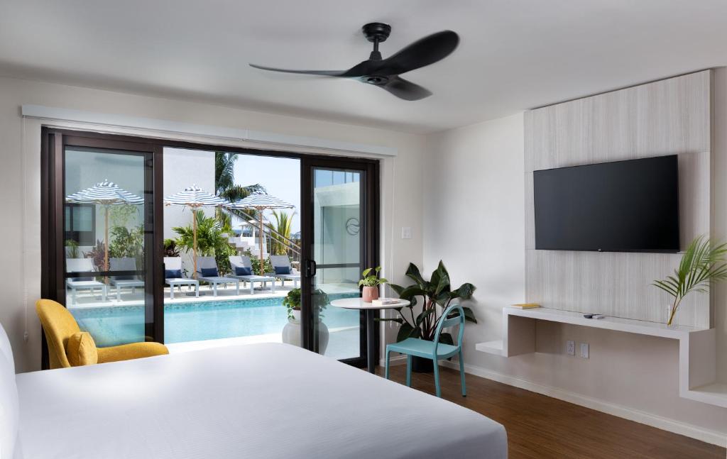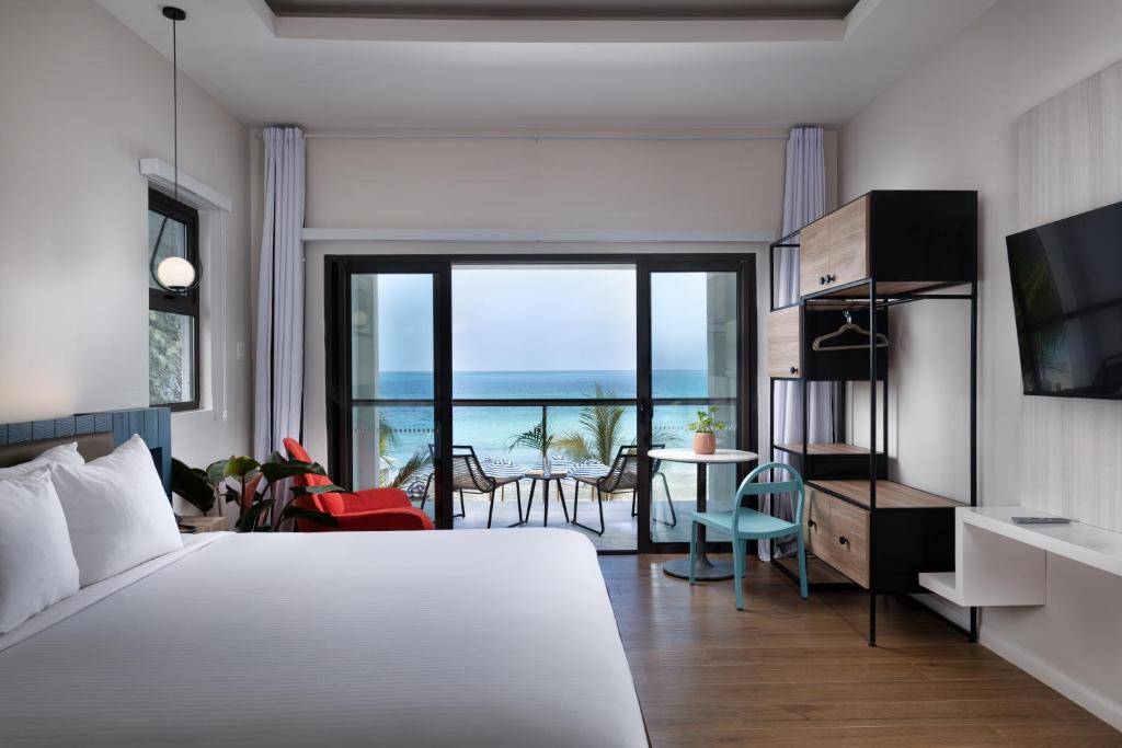 Fiecare cameră colorată are balcon cu vedere la ocean sau la grădină. Camerele Hotelului Foote Prints includ, de asemenea, acces gratuit la Wi-Fi și TV prin cablu.
