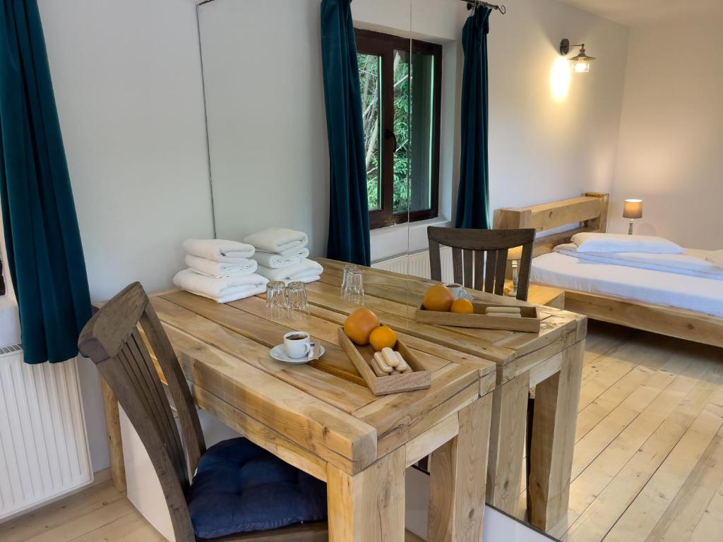 Pensiunea Poiana Izvoarelor are un restaurant care servește mâncăruri din bucătăria pizza, locală și internaţională. La cerere, sunt disponibile și preparate vegetariene, fără lactate și vegane.