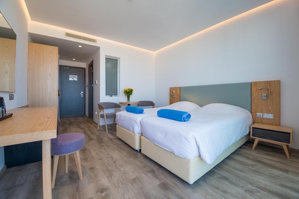 Camerele hotelului au birou. Camerele au baie privată, iar anumite unităţi ale hotelului Protaras Plaza se bucură de o zonă de relaxare. Fiecare cameră este dotată cu dulap și fierbător.