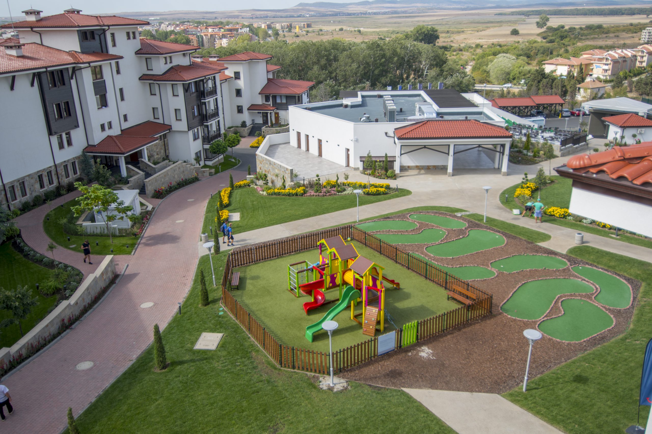 Toate camerele sunt dotate cu aer condiționat, TV cu ecran plat cu canale prin satelit, frigider, fierbător, duș, uscător de păr și birou. Camerele complexului includ dulap și baie privată.